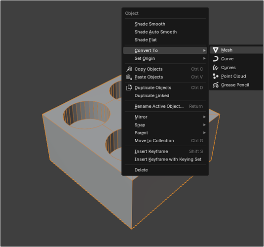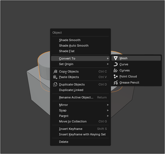 先滑鼠右鍵 Convert To > Mesh 轉成網格。