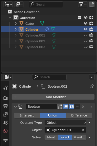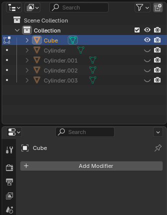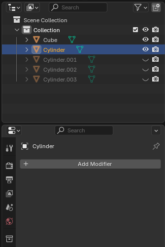 轉換後 Scene Collection ,可以隱藏 Cylinder.001 - Cylinder.003 。