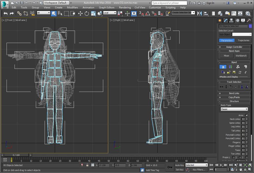 在 Biped 圖層建立 Biped (兩足動物骨架)。