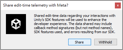 匯入 Meta XR All-in-One SDK 與 Meta XR Interaction SDK OVR Samples 資源。