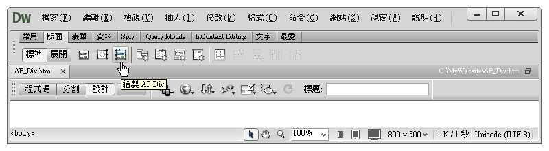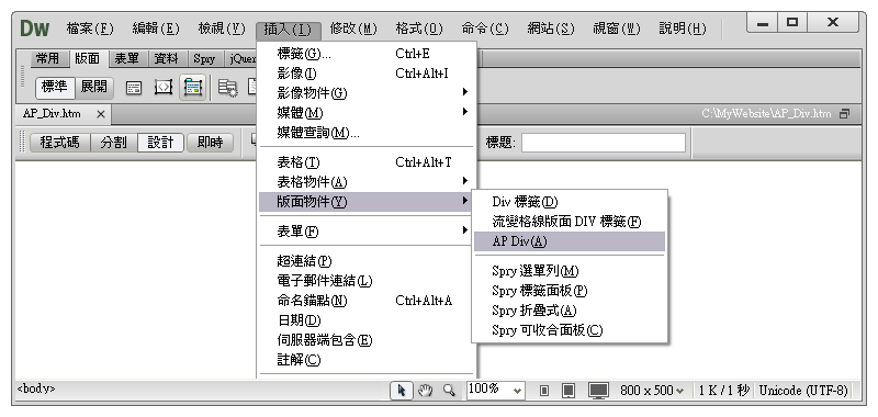 Dreamweaver AP DivAP Div 是網頁設計軟體 Dreamweaver 的「絕對定位」的元素,它允許使用者像操作圖層一樣,自由地在網頁上拖曳、堆疊和定位內容,不受其他元素位置限制,常用於快速排版和製作版面設計。 AP Div 提供那些互動功能?類似 Unity SetActive 可切換顯示隱藏,還可以像 Flash 動畫飛來飛去! 以下是 Dreamweaver CS6 版本的 AP Div 工具,新版 Dreamweaver 可使用修改程式碼的方式運行。