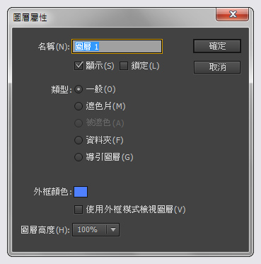 設定圖層屬性 除了使用前面介紹的方式,您也可以在時間軸面板的圖層按右鍵,設定圖層屬性。