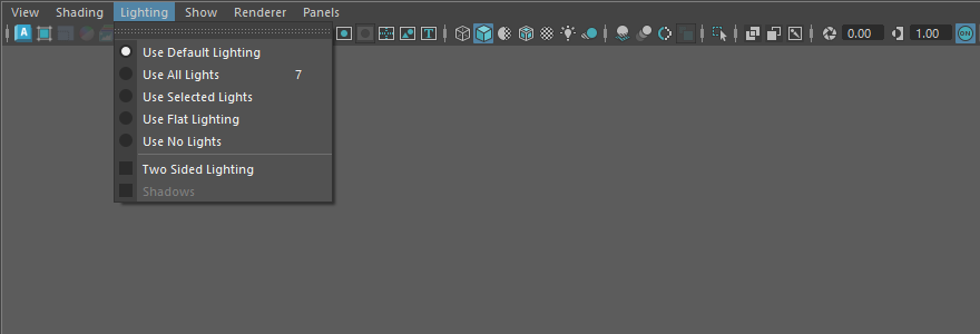 功能表 Lighting 可選擇視圖顯示使用的燈光類型。