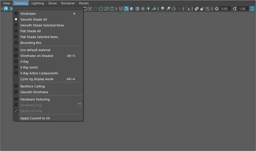 功能表 Shading 可切換不同的視圖顯示模式。