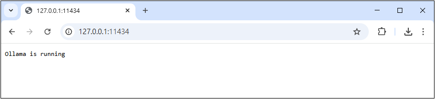 開啟瀏覽器輸入 127.0.0.1:11434 將出現 Ollama is running 訊息,表示 Ollama 伺服器正常執行。
