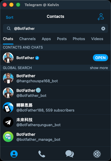 首先在 Telegram 建立一個 Bot 聊天機器人,您可以使用 Telegram 手機版、網頁版、電腦版操作。