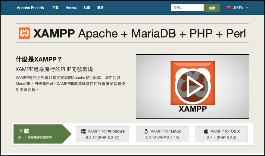 官網下載 XAMPP for OS X 安裝程式。