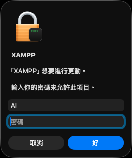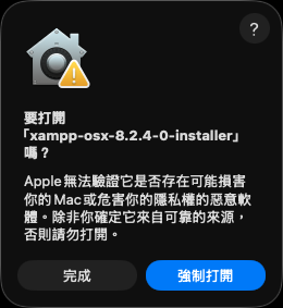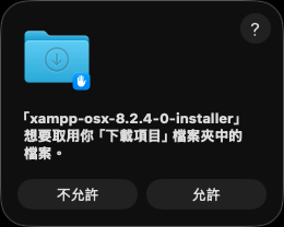 xampp-osx-installer 強制打開,輸入密碼來允許操作…