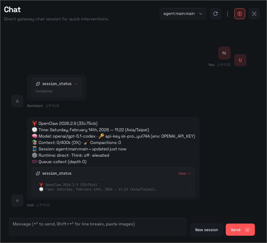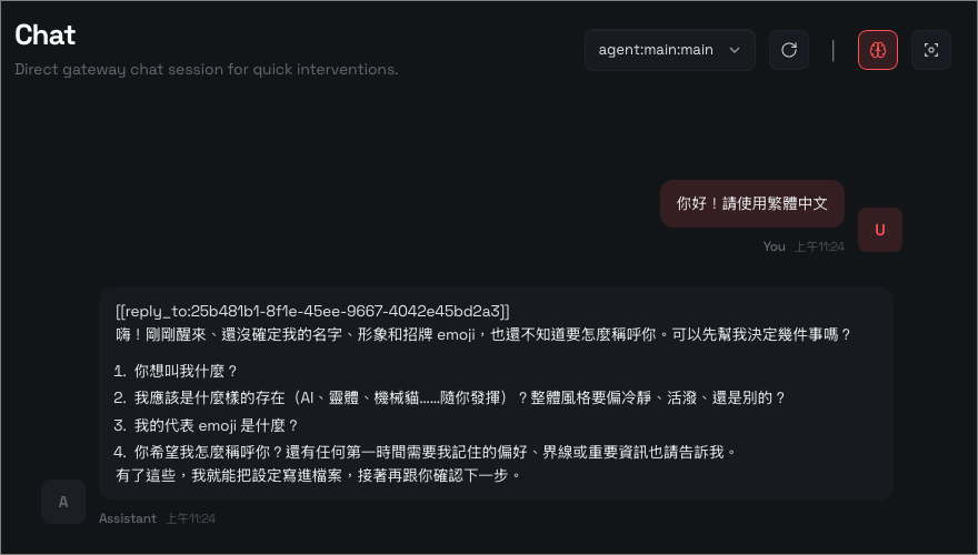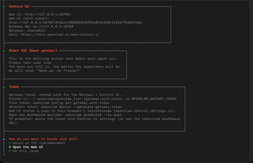 選擇 Open the Web UI 將透過網頁瀏覽器開啟 OpenClaw 管理頁面。
