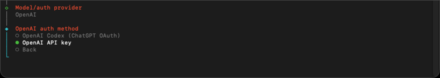 選擇 Default model 預設模型 ,代表 OpenClaw 已經讀取到 OpenAI API key,可以選一個 「 預設要用的模型 」 。 建議可選 Keep current (openai/gpt-5.1-codex) ,理由是保守、穩定、相容性較好,先把整套流程順跑最重要! 如果,你需要要更強推理、而且能接受成本 / 速度變動,可以選 openai/gpt-5.3-codex 模型。
