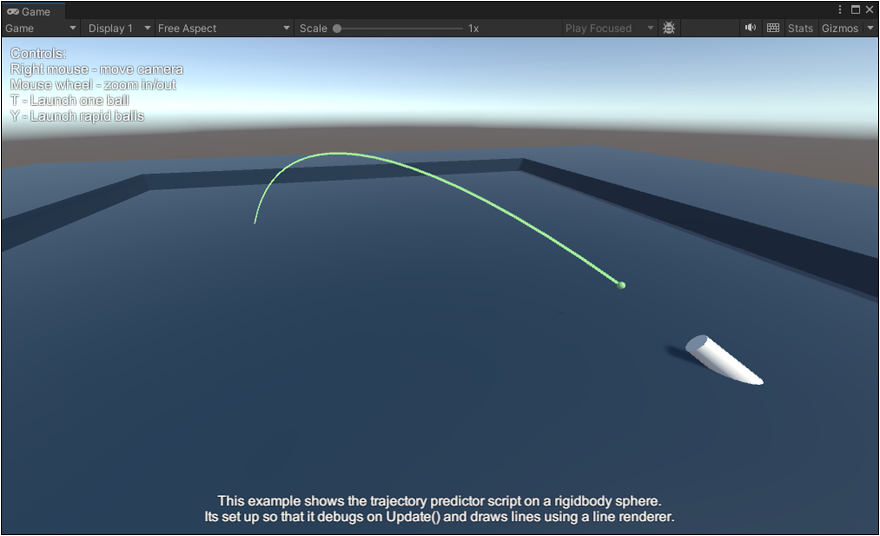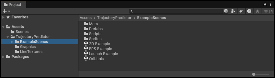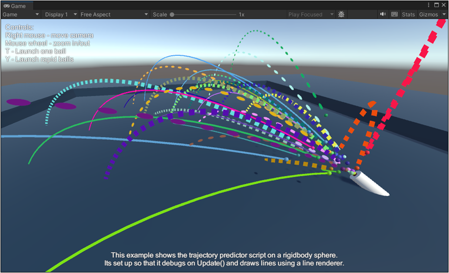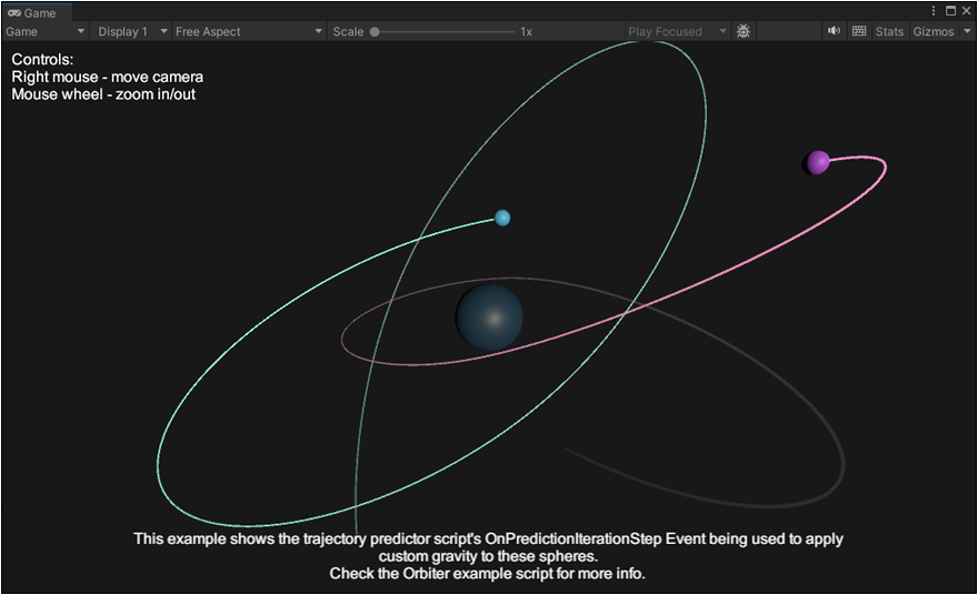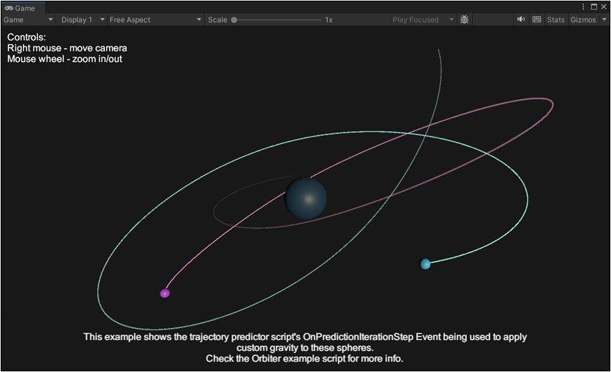 Launch Example 展示場景 - Oribitals 展示場景 - 製作類似太陽與行星移動軌跡的動畫效果。 使用方式 - 為移動物件套用 Trajactory Predictor 腳本,然後指定圍繞的目標。