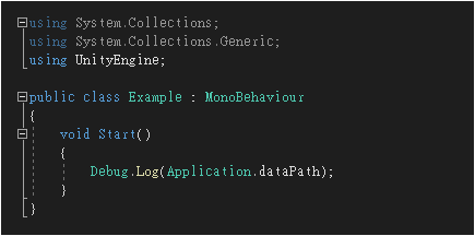 Application 應用程式Application 用於即時取得應用程式資訊,並且可以製作多種功能,例如關閉遊戲等。 Application.dataPath ( ) - Contains the path to the game data folder on the target device (唯讀)。