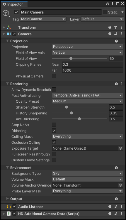 攝影機:左圖為一般專案的攝影機、右圖為 HDRP 專案的攝影機。