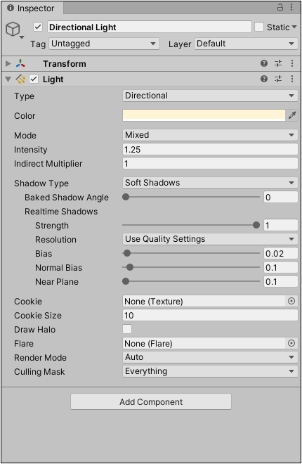 這三個項目是控制場景上的太陽用的,首先第一個Enable Sun Disk是決定太陽是否出現,但是這裡不會影響實際的光照效果,會影響的只有天空上太陽這個物體和它所帶來的反射 有太陽的效果