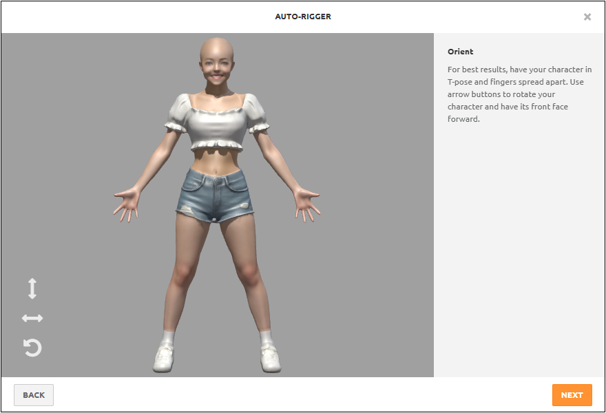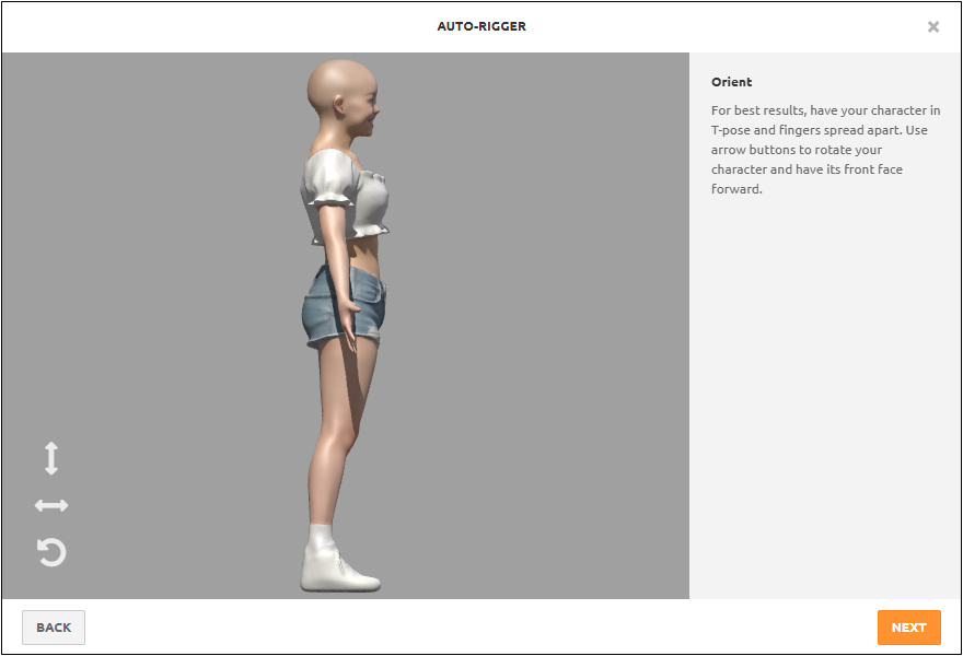 上傳後可能發現角色的方向不對,使用左下方的箭頭工具,調整到面向前方。