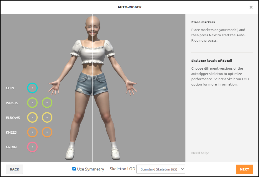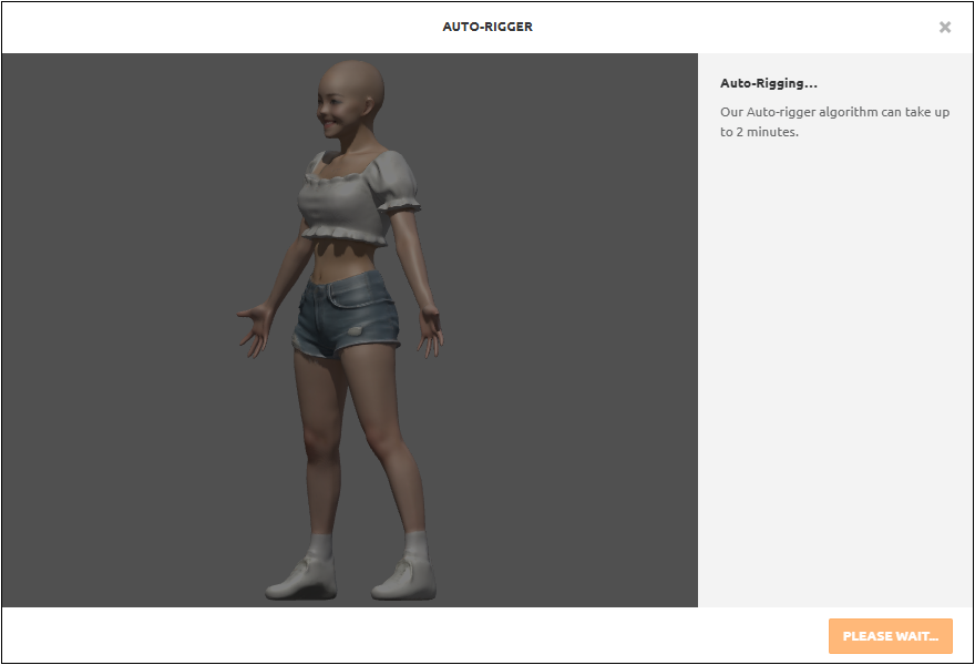 您可能會發現 AUTO-RIGGER 經常無法達到預期效果,對於品質比較要求的情況,建議使用 3D 軟體調整骨架權重!