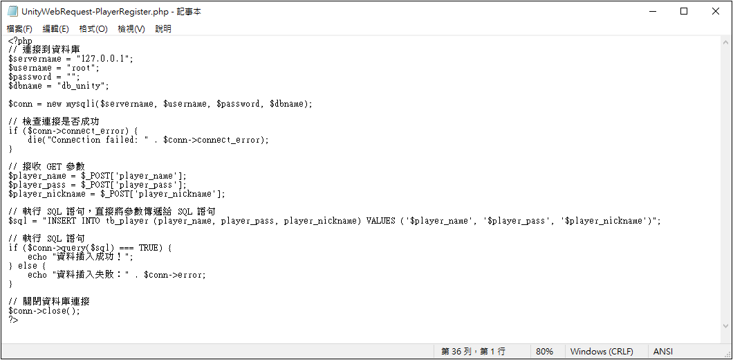 因此 UnityWebRequest-PlayerRegister.php 也改為 POST 方式接收