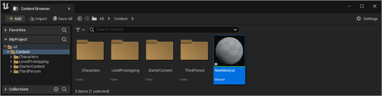 建立材質專用的資料夾,滑鼠右鍵新增材質,預設名稱為「NewMaterial」。