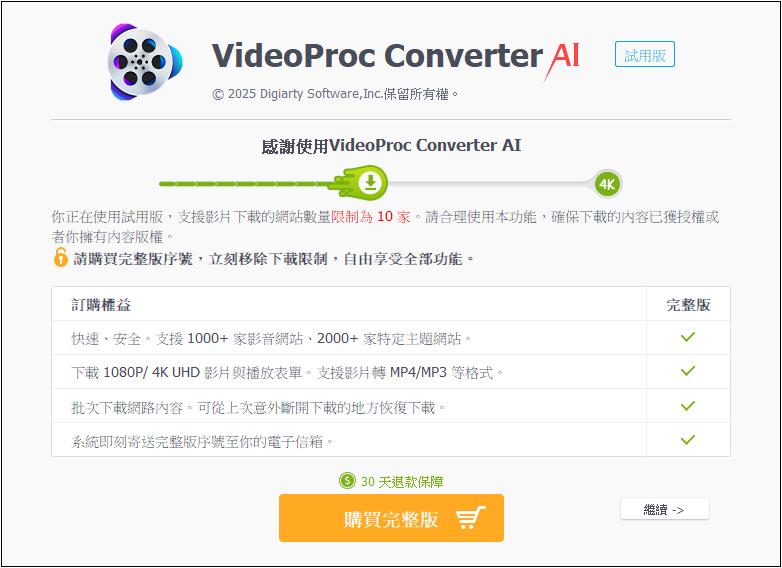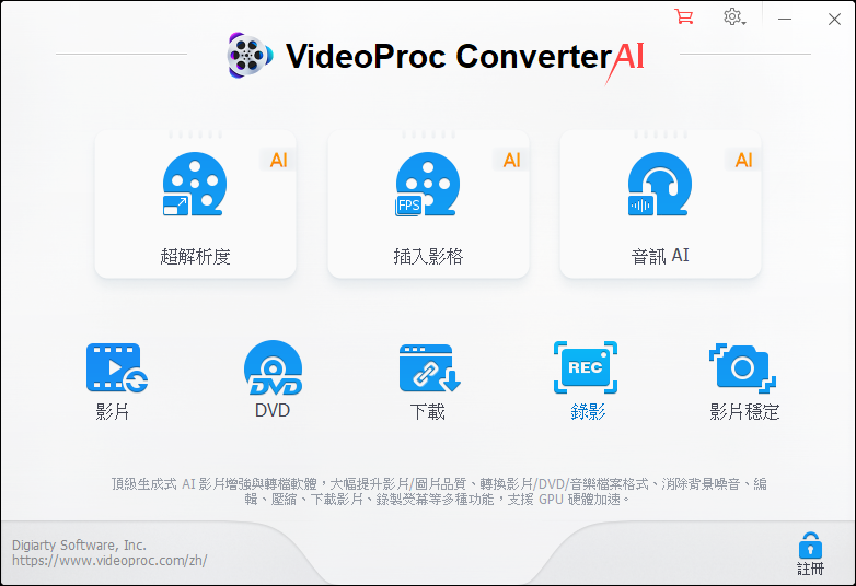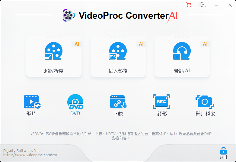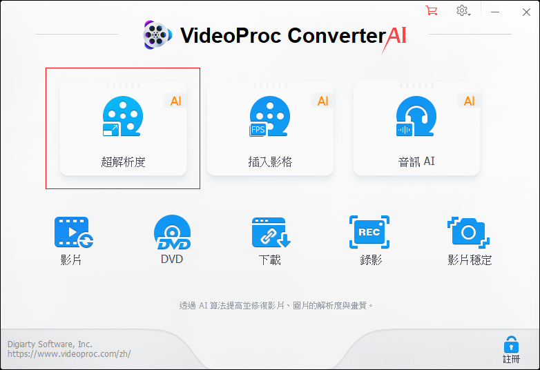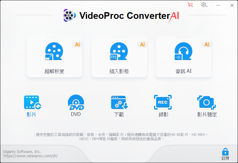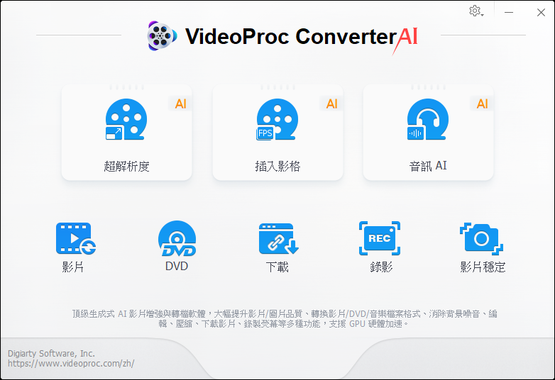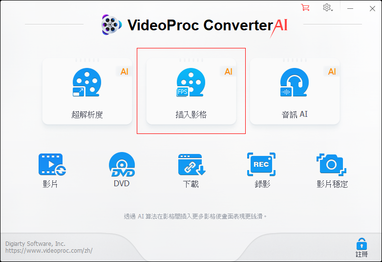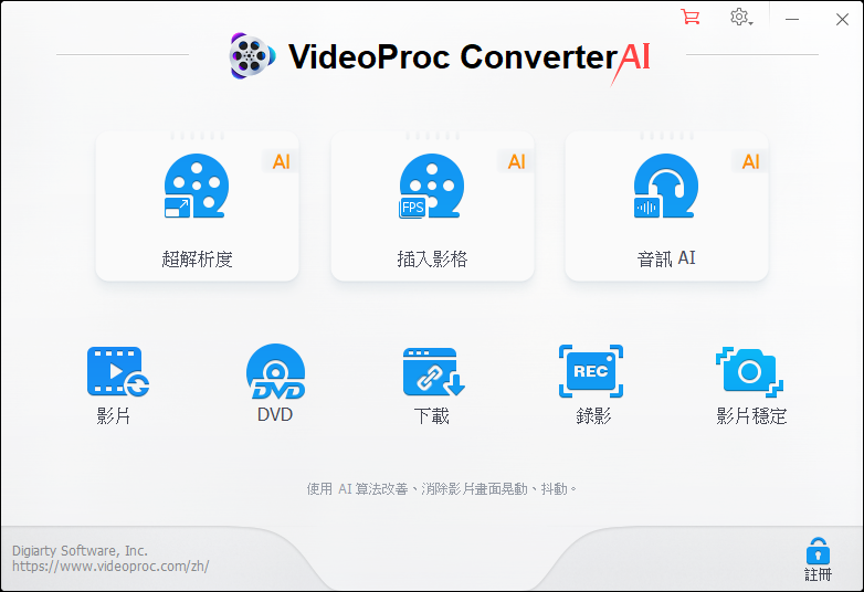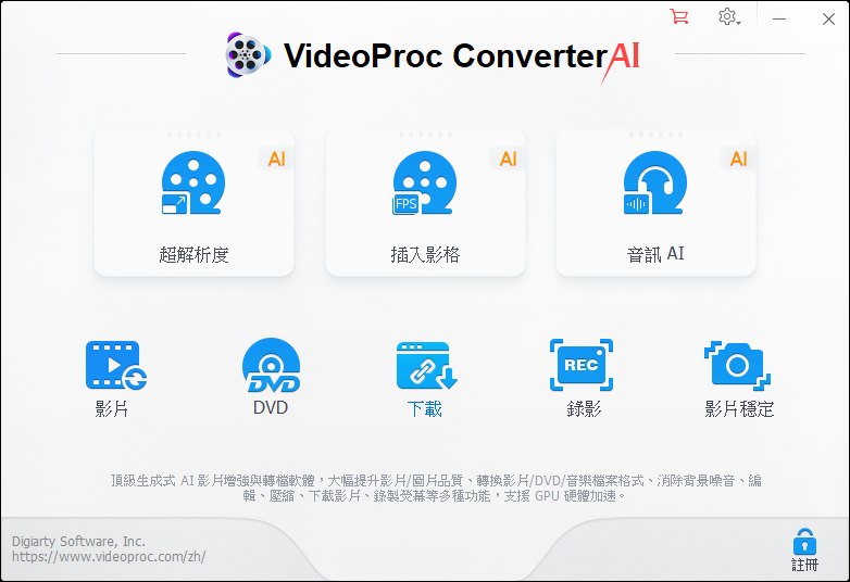 VideoProc Converter AI 教學Author: Kelvin HuangVideoProc Converter AI 是一套 AI 影片增強與剪輯軟體,提升影片解析度、插入影格、音訊 AI、下載影片、螢幕錄影、影片穩定。最近 VideoProc Converter AI 限免活動開始了! 別再下載不安全的 VideoProc Converter AI 破解版,把握機會領取吧! 官方網站 [ https://www.videoproc.com/zh/video-converting-software/ ] 下載頁面 [ https://www.videoproc.com/event/download-giveaway.htm ]
