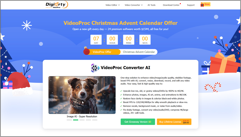按下 VideoProc Converter AI 網頁的 Get Giveaway Version 按鈕。