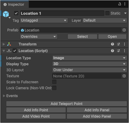 維持 Location 物件選取的狀態,按下 Inspector 的 "Add Teleport Point" 按鈕,然後將傳送點移到適當位置。