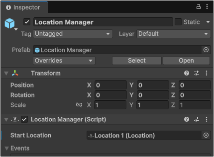 注意!場景中只能有一個 Location Manager 物件與 Player 物件,重複加入這些物件時將會出現錯誤。