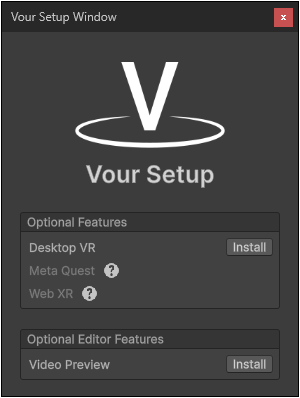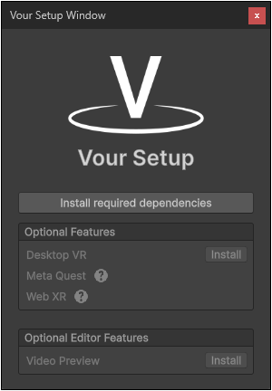將 Vour 下載並匯入專案,設定視窗將會開啟,按下 Install required dependencies 安裝必要的檔案。