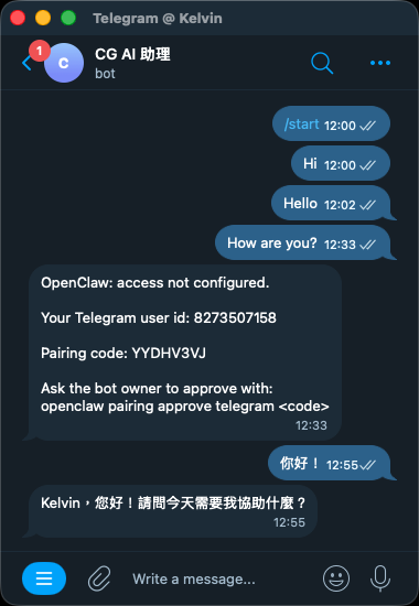 OpenClaw Telegram 設定教學使用 TUI / Web UI 都是在電腦前操作,接著介紹 Channels 設定步驟,讓您也能在遠端使用手機控制 OpenClaw 執行任務!
