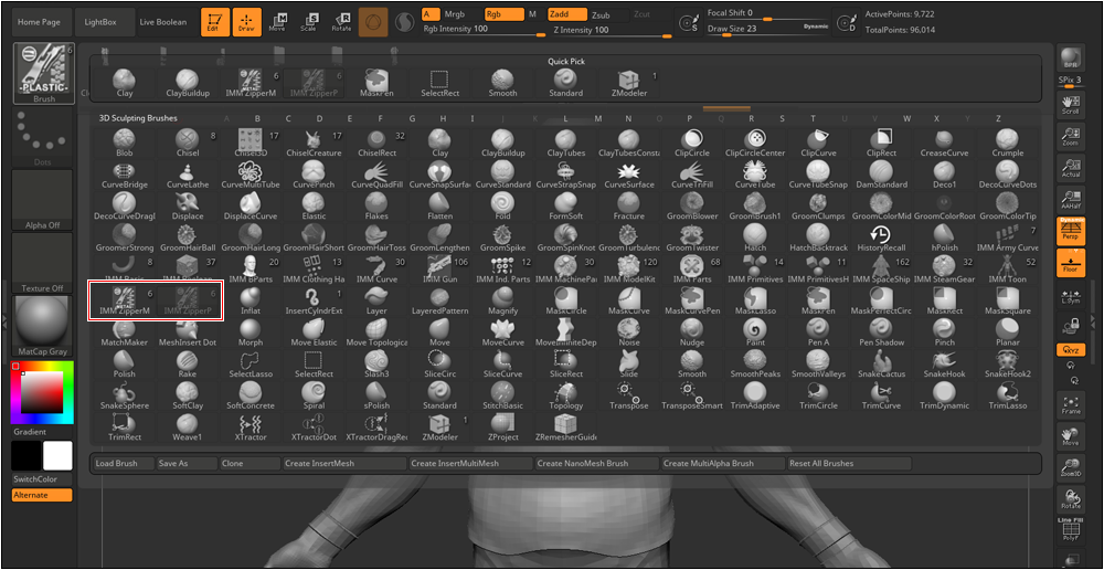 ZBrush IMM 筆刷教學ZBrush IMM 筆刷 ( Insert Multi Mesh brushes ) 是一種可插入多種網格的筆刷,單一筆刷可選擇多種零件,節省建模時間。